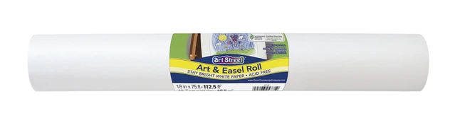 Art Street Super Value Easel Paper Roll measuring 18 inches x 75 feet works with double adjustable easel with paper roll holder.