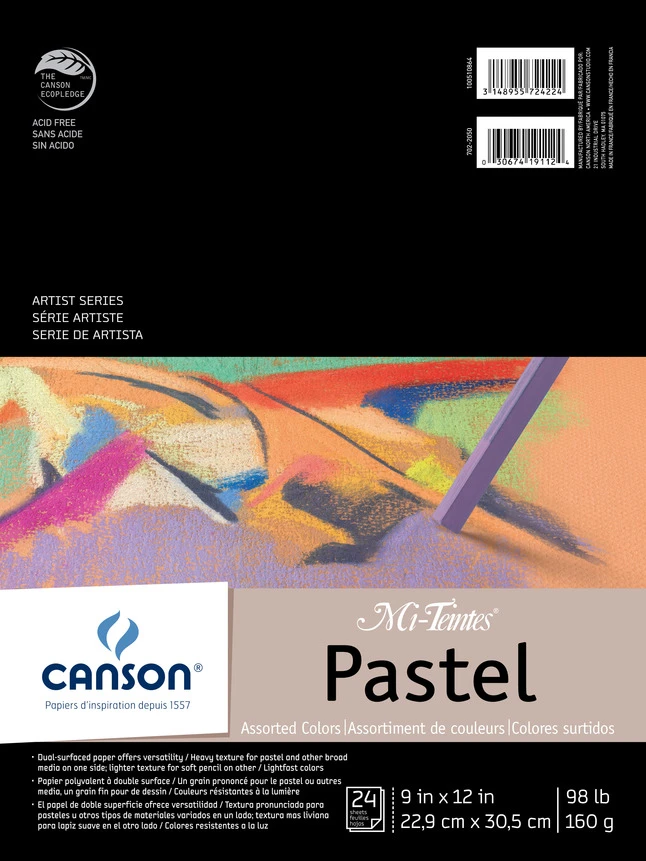 Canson Mi-Teintes Drawing Pad, 9 X 12 Inches, 98 Lb, Assorted Colors, 24 Sheets