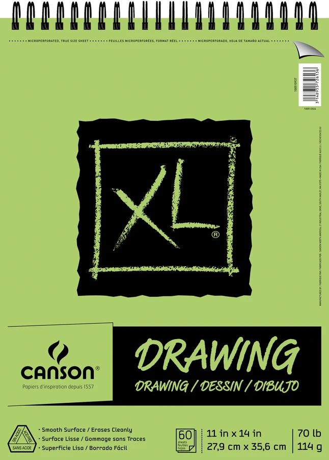 Canson XL Drawing Pad features 70 lb basis weight paper that can be used with graphite, charcoal, conte and color pencil. Pad measuring 11 x 14 inches contains 60 micro-perforated sheets for clean removal from the pad.