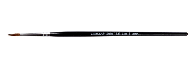 Crayola 1121 Watercolor Paint Brush ideal for any classroom has black polished wood handle with aluminum ferrule. Size 3 watercolor brush featuring round shaped head points is perfect for detail work. Blended with acrylic fiber for better control and natural camel hair for maximum paint load.