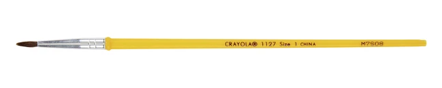 Crayola 1127 Watercolor Paint Brush ideal for hobby use, craft and school is a long-wearing versatility camel hair brush. Size 1 economical brush has full, round head secured in an aluminum ferrule on yellow plastic handle.
