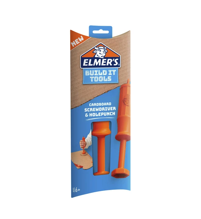 - Use other side to screw plastic Elmer’s screws into cardboard (not included)