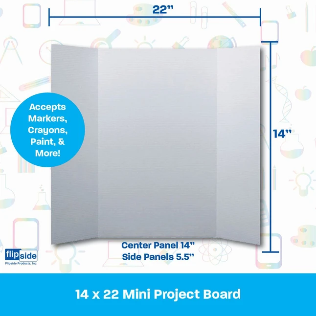 Flipside Mini Tri-Fold Display Board, 14 X 22 Inches, White