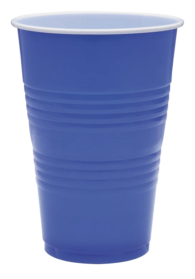 Plastic party cups are the perfect disposable choice for your next event. Durable plastic cup holds up to 16 ounces of a cold beverage to help reduce the time and effort of refills. Cups offer a wide mouth for quick, easy pouring, a rolled comfort rim, and a double set of ridges around the middle of the colorful exterior for easy gripping.