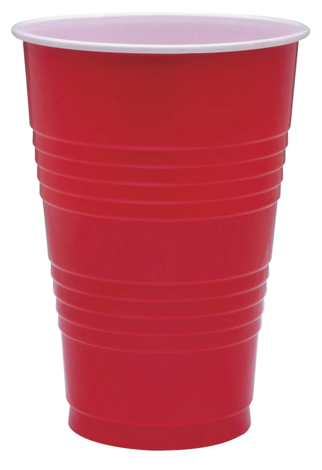 Plastic party cups are the perfect disposable choice for your next event. Durable plastic cup holds up to 16 ounces of a cold beverage to help reduce the time and effort of refills. Cups offer a wide mouth for quick, easy pouring, a rolled comfort rim, and a double set of ridges around the middle of the colorful exterior for easy gripping.
