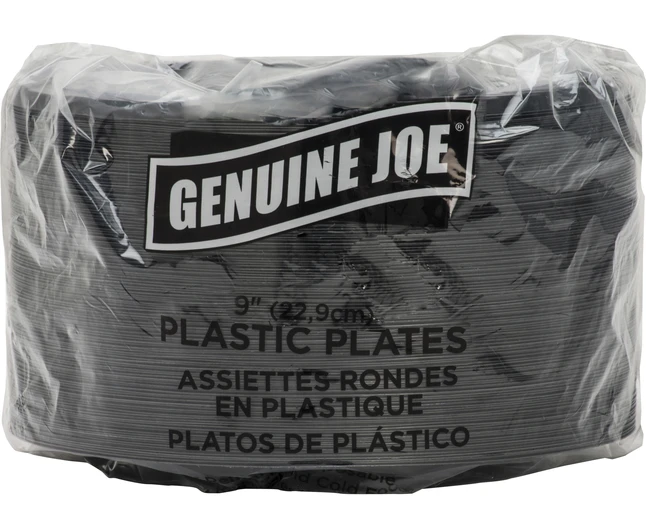Genuine Joe 9 in W Black Round Plastic Plate holds large servings of hot and cold foods. Reusable and disposable is easy to clean, sold as 125 per pack.