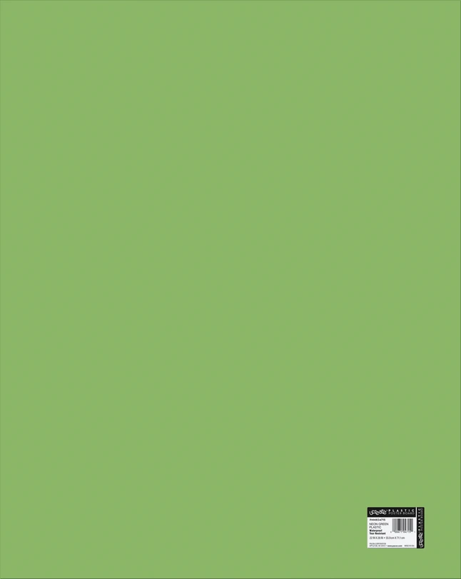 Pacon Plastic Poster Board is waterproof, tear resistant, durable and flexible. It accepts all types of media and is perfect for home, office, school and art projects. 12 point polyethylene material is lead free. Pack of 25 boards measuring 22 x 28 inches. Lime Green.