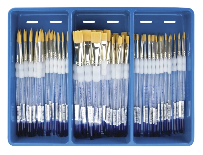 Royal & Langnickel Soft Grip Golden Taklon Brush Assorted Classroom Pack, Pack Of 72
