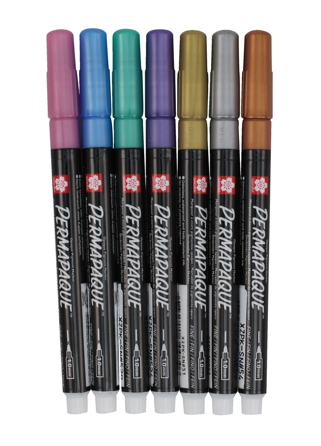 SAKURA Permapaque Metallic Markers, Fine Point, Assorted Colors, Set Of 7