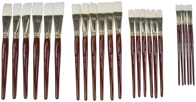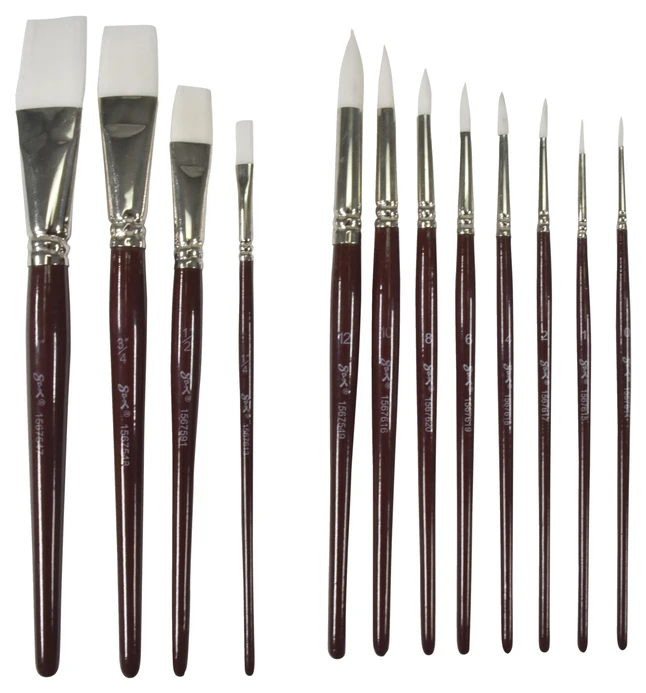 Includes 6 of Each: Round Brushes – 0, 1, 2, 4, 6, 8, 10, and 12 Flat Brushes – 1/4, 1/2, 3/4, and 1 Inch