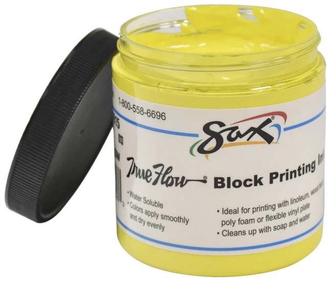 Sax True Flow Water Soluble Block Printing Ink, 1 Pint Jar, Primary Yellow