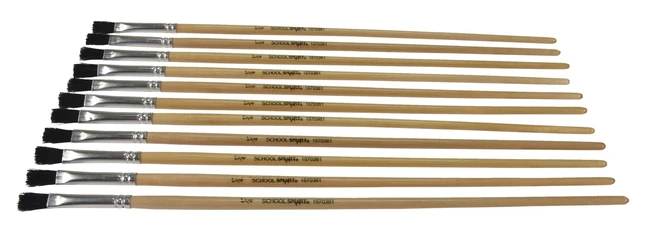 - 12 Long Handle Flat Paint Brushes