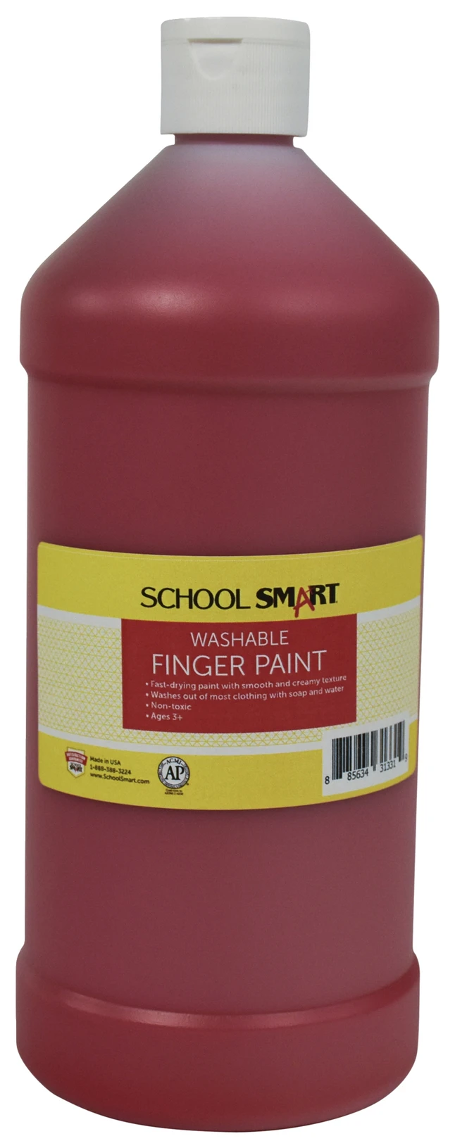 School Smart Washable Finger Paint, Red, 1 Quart