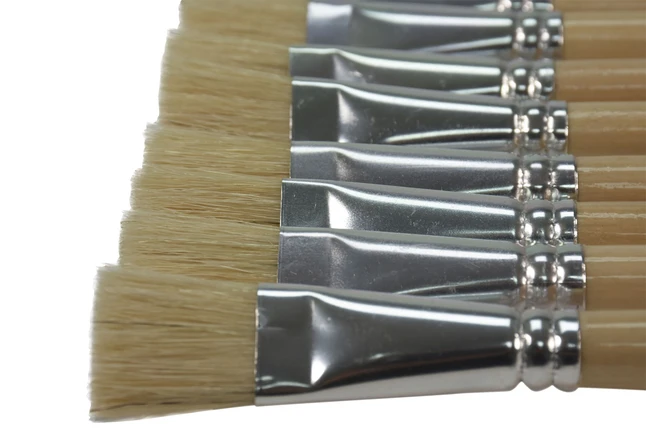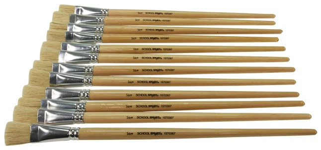 School Smart’s White Bristle Paint Brush features a long handle and interlocked bristles in a seamless, smooth aluminum ferrules. Clear coated hardwood handle. This is a good brush for a variety of mediums at an exceptional price and a perfect addition to your classroom. 3/4 inch width. Sold as a pack of 12.