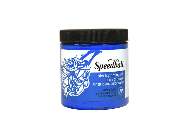 Speedball Water Soluble Block Printing Ink adds brilliance to your creations. Perfect for printmaking with linoleum, wood or any relief printing in the studio, school or home. Ink is non-toxic, gluten free and easily cleans up with soap and water. Primary Blue. 8 Ounces.