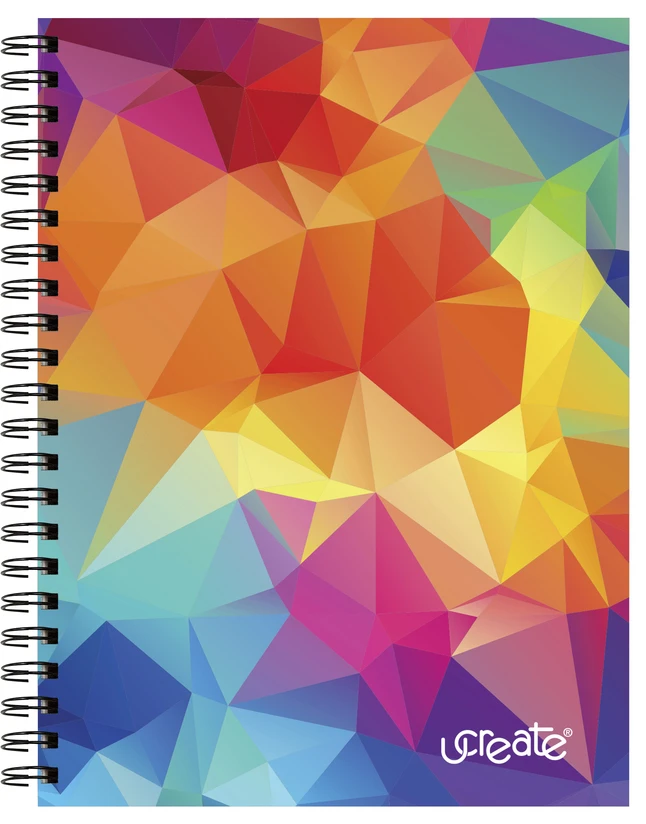 This is a premium sketch book with a durable poly cover and back, featuring a colorful kaleidoscope design on the cover. Each book contains 75 sheets of heavyweight, acid free drawing paper. The spiral binding lies flat and this book is ideal for sketching and drawing with dry media. The sheets are perforated for final art. Acid free.
