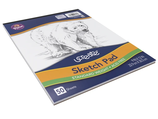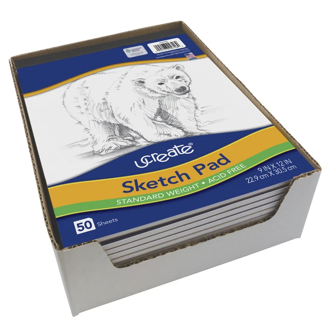 Ucreate Lightweight Sketch Pad, 9 X 12 Inches, Bright White, 50 Sheets