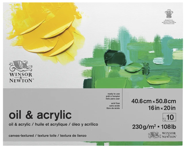 - Primed soft warm white, canvas-textured paper with a fine tooth